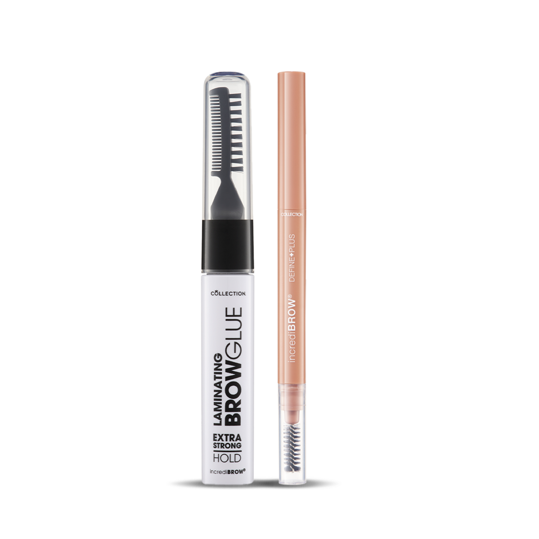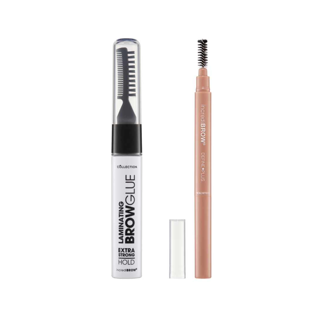 Incredibrow Laminating Brow Gel delivers extra strong hold with a natural, non-sticky finish that lasts up to 24 hours. Pair it with Incredibrow Define Plus, a dual-ended brow pencil with a teardrop tip for precise filling and shaping, plus a spoolie to blend and fluff, it delivers soft, full brows that stay in place all day.