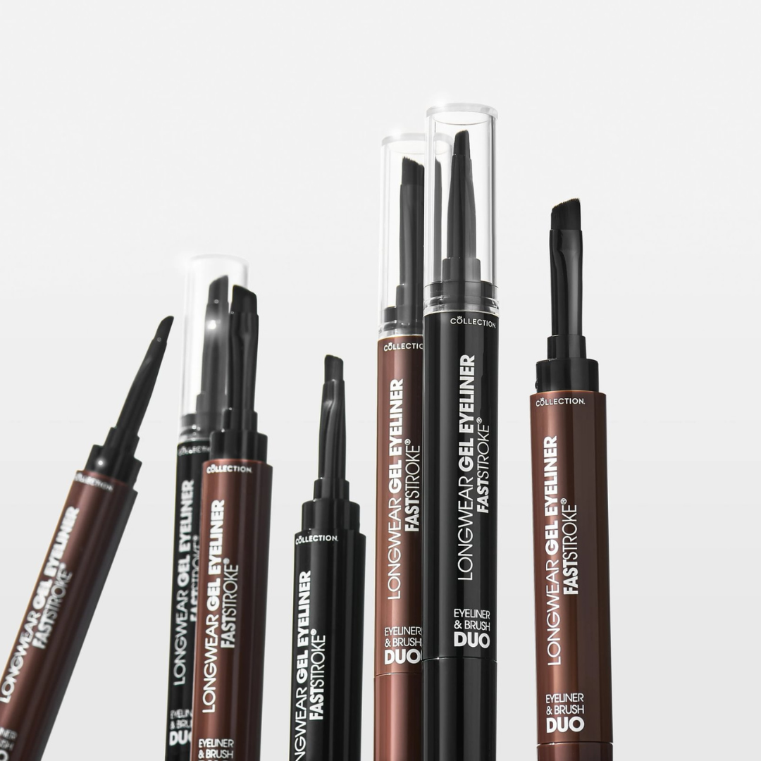 Introducing the Collection Fast Stroke® Longwear Gel Eyeliner & Brush Duo—your new go-to for bold, all-day eye looks. This dual-ended eyeliner and brush combo delivers intense, ultra-pigmented colour in just one stroke, giving you perfect definition that lasts up to 24 hours.